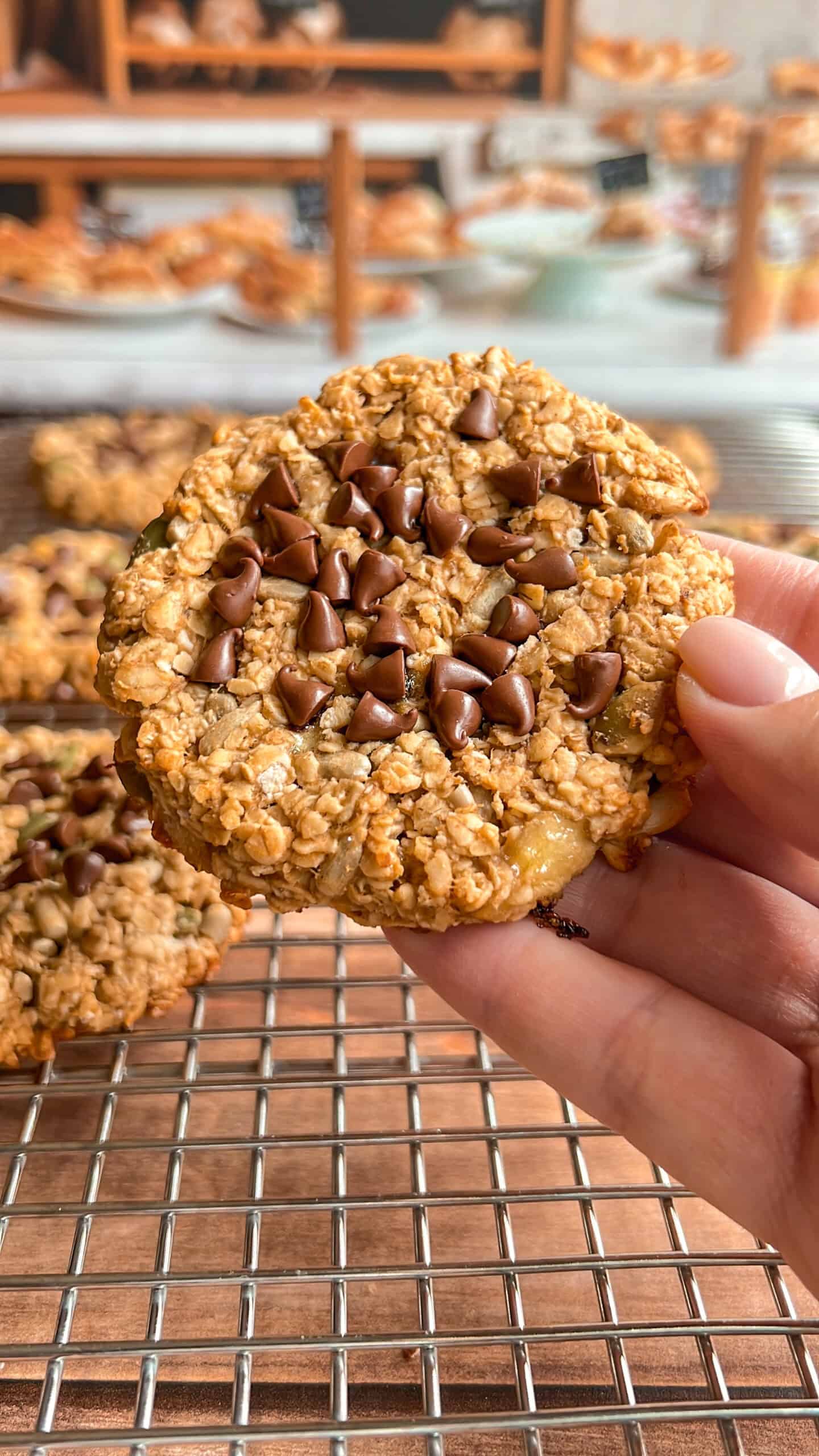 This recipe is a childhood dream fulfilled: cookies for breakfast 🤗! My breakfast cookies are chewy, nutty, chocolatey, and absolutely irresistible 🍪. Plus, they can be adapted for everyone to enjoy, no matter your diet or allergies. They’re naturally vegan, dairy and gluten free, and they have no refined sugar. You probably have all the ingredients in your kitchen right now: a ripe banana and a handful of simple pantry staples. Start your day off strong with these nutritious, delicious breakfast cookies. No sugar crash – just a perfect, not-too-sweet way to start your morning 🌞.