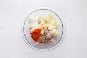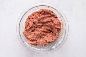 - Add the ground meat to a bowl with the rest of the ingredients. Mix well.