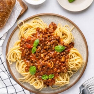 🍄 Mushrooms: Optional, but perfect for an earthy, umami depth. They mimic the meatiness of traditional Bolognese but keep things plant-based and light.