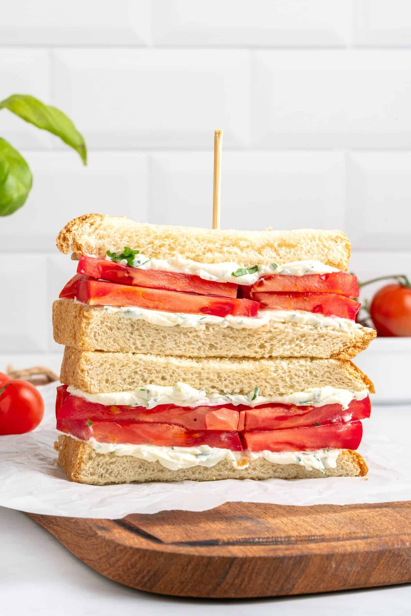 She’s creamy, she’s juicy, she’s salty, and she’s rocking peak summer energy 🌞. This rendition of a tomato sandwich levels up your classic Tomato Sandwich Recipe. Ready in under 10 minutes ⏰, it’s equal parts fresh and indulgent: golden crunchy sourdough, thick heirloom slices, and a whipped feta spread that’s so smooth it could slide into your DMS and you’d actually reply 😏📲. And if you really want to take it from wow to whoa, swap the cream cheese for Boursin 🧄🌿. It feels borderline unfair how good it is. Serve it for a quick lunch, serve it for fancy brunch, serve it to strangers if you want them to like you immediately.